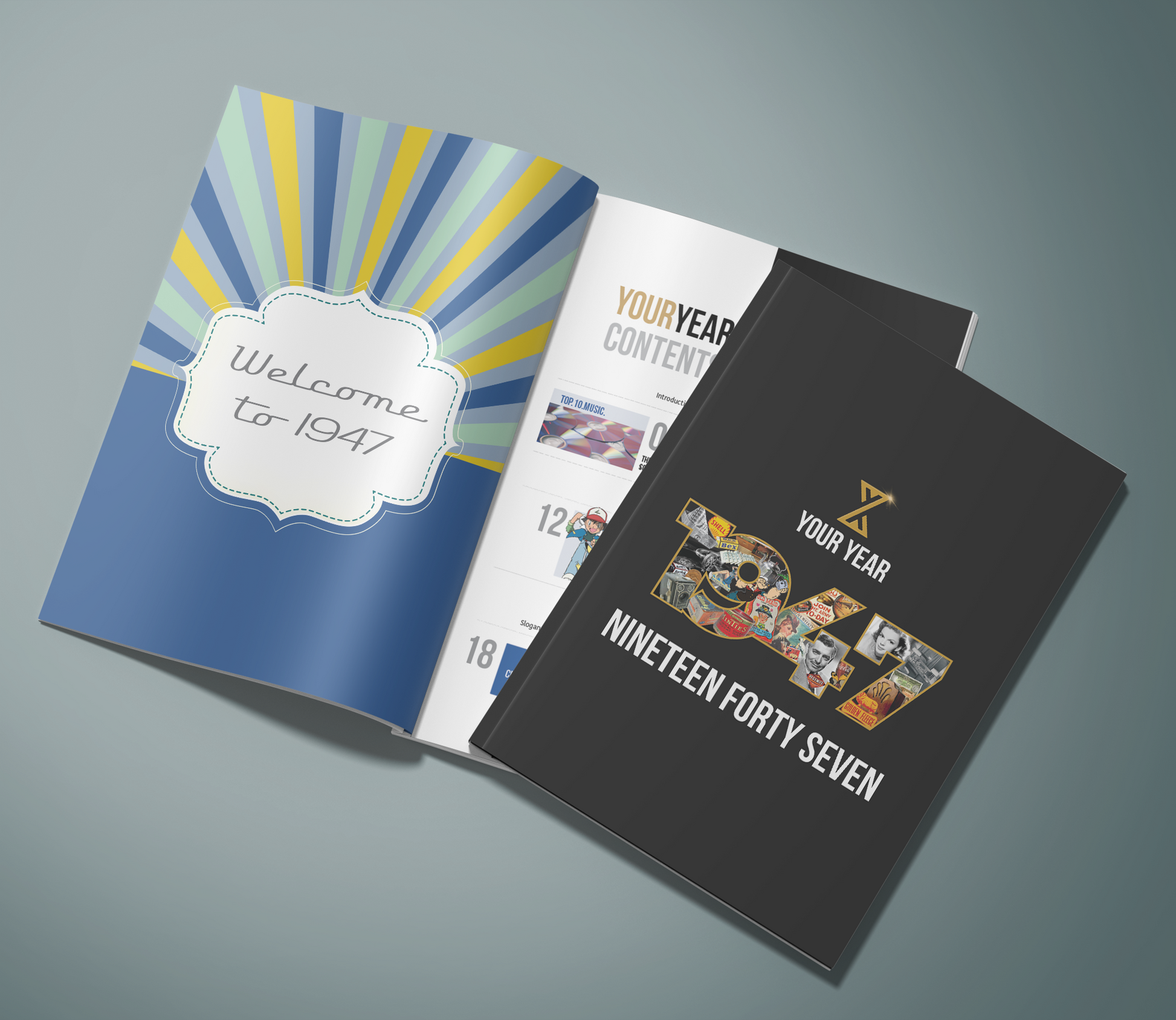 The world was very different in 1947.  Take a step back and reminisce about the music, movies, news and fashion, plus much more. There are also 2 signature pages for people to write their personal messages.