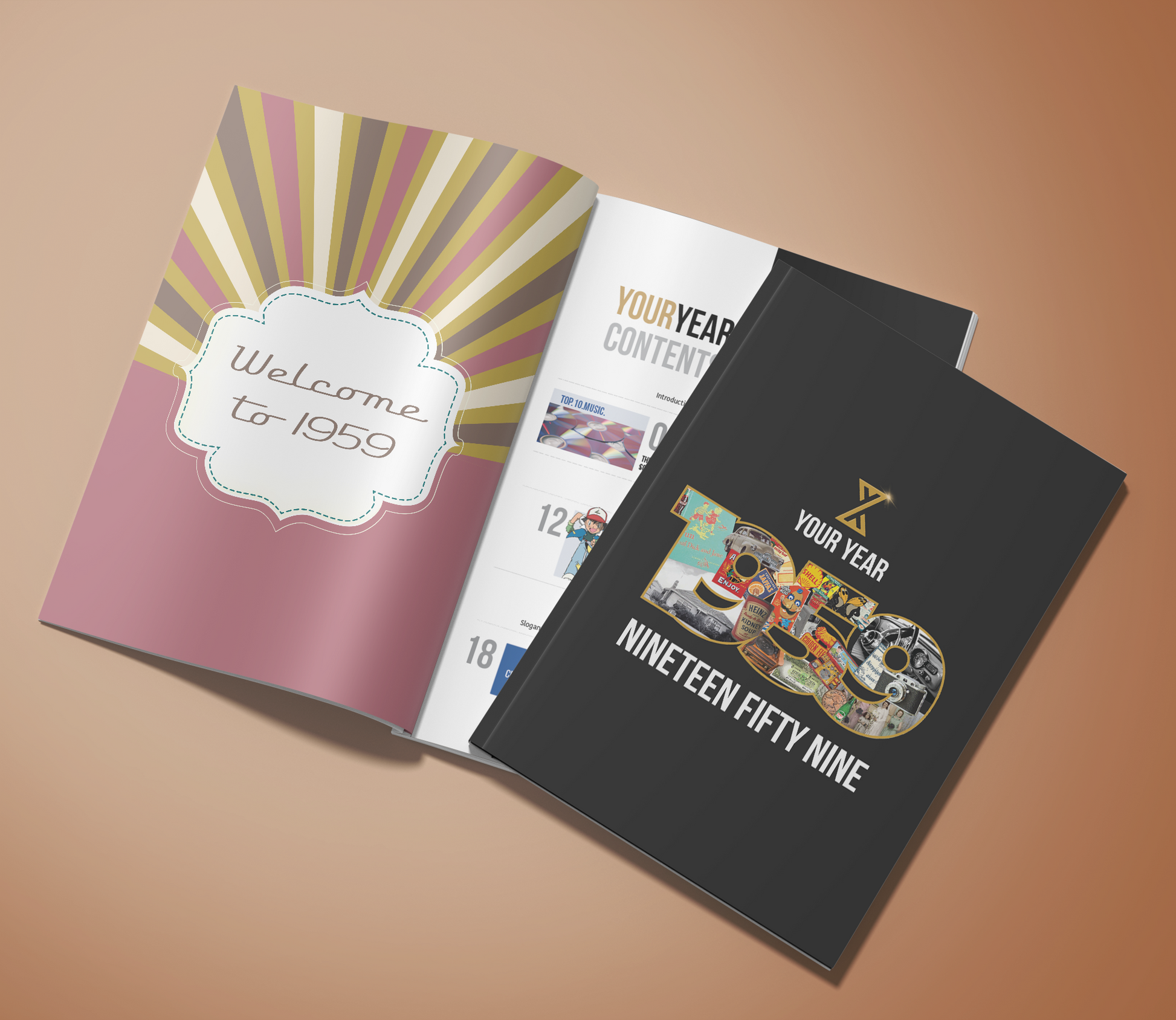 The world was very different in 1959.  Take a step back and reminisce about the music, movies, news and fashion, plus much more. There are also 2 signature pages for people to write their personal messages.