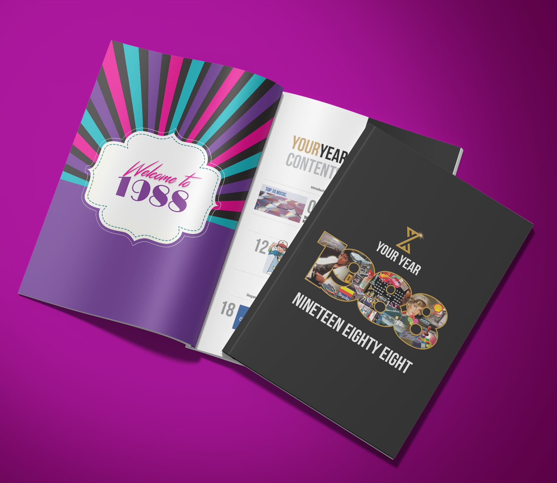 The world was very different in 1988.  Take a step back and reminisce about the music, movies, news and fashion, plus much more. There are also 2 signature pages for people to write their personal messages.